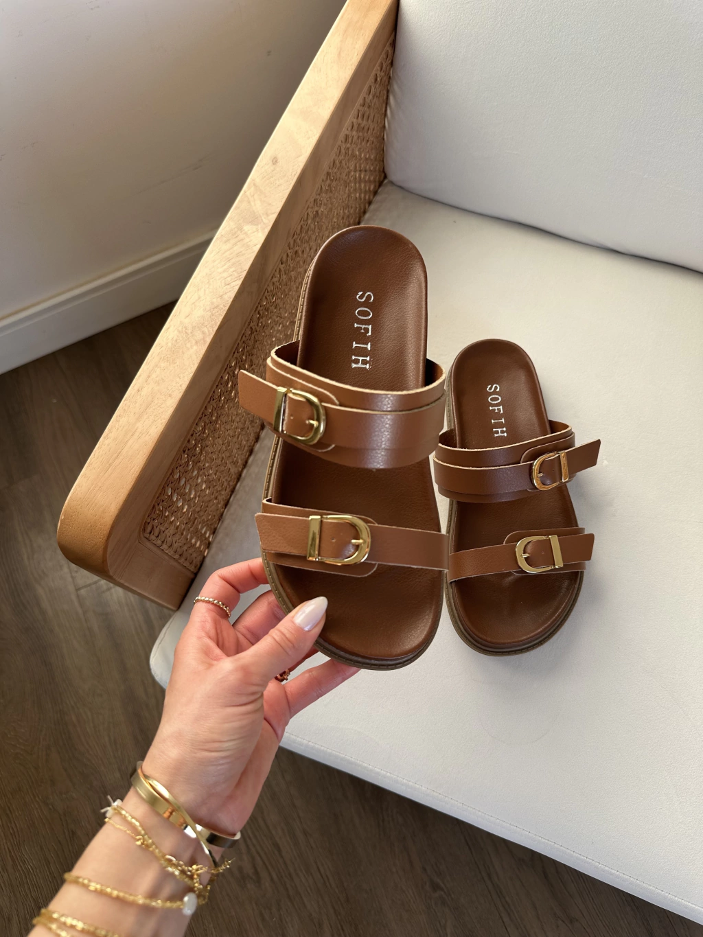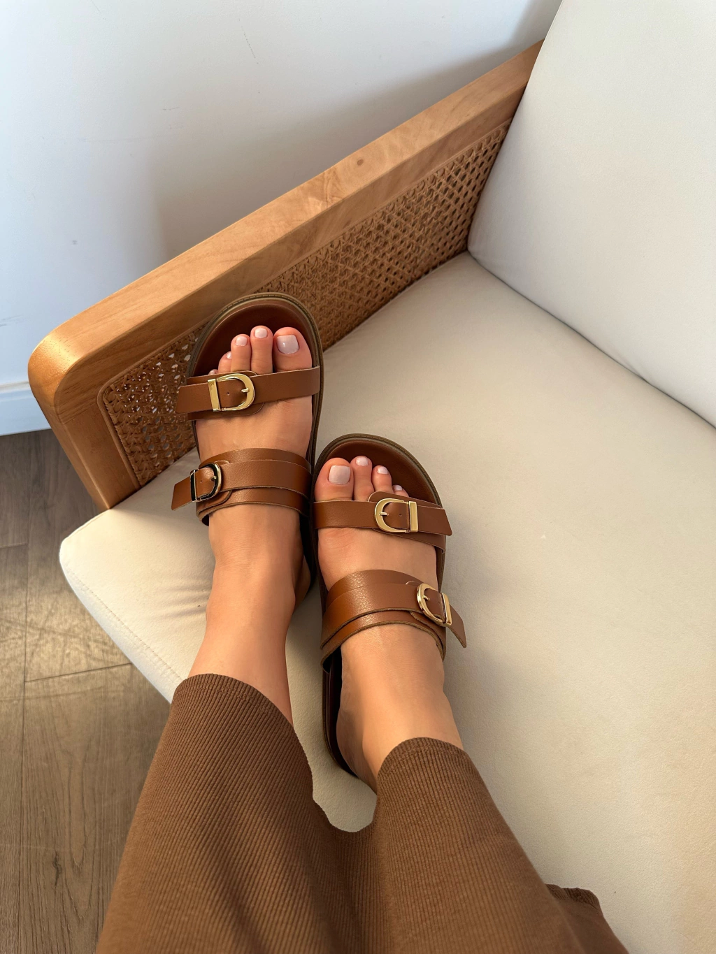 Duas tiras a fio com fivelas ricas em metal ouro light