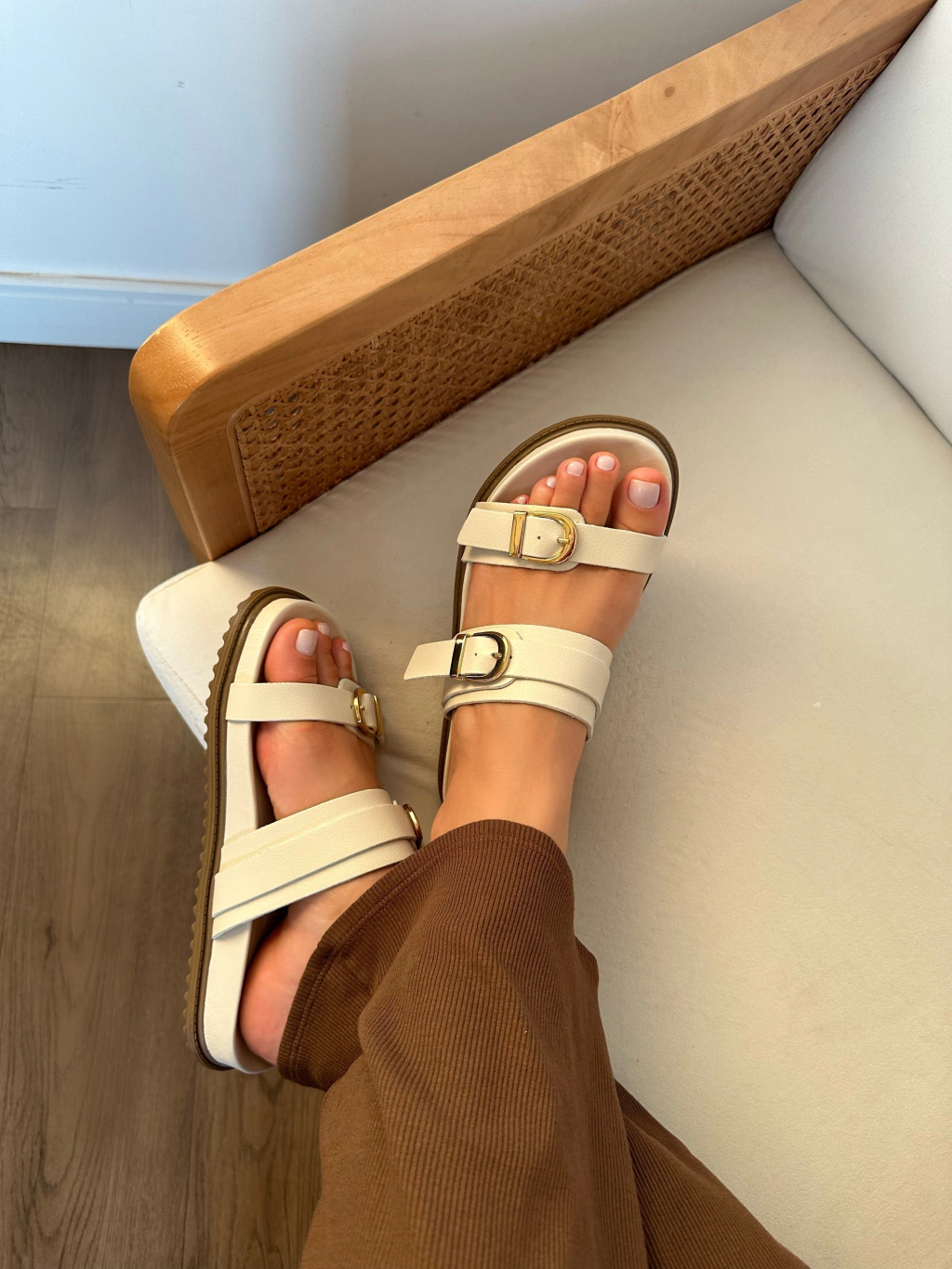 Duas tiras a fio com fivelas ricas em metal ouro light